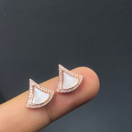 pearl fan-shaped diamond stud earrings(宝家贝母扇形镶钻耳钉)