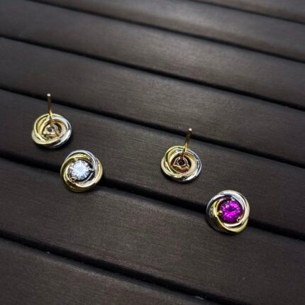 Three-color single diamond earrings with diamonds(镶钻三色单钻耳钉)