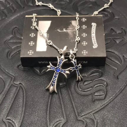 Blue Diamond Distressed Double Cross Necklace(克家蓝钻做旧款双十字架项链)