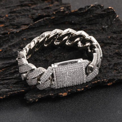 18mm Flip Clasp Mixed Zirconia Diamond Cuban Bracele(18mm翻盖扣混镶锆石菱形古巴手链)