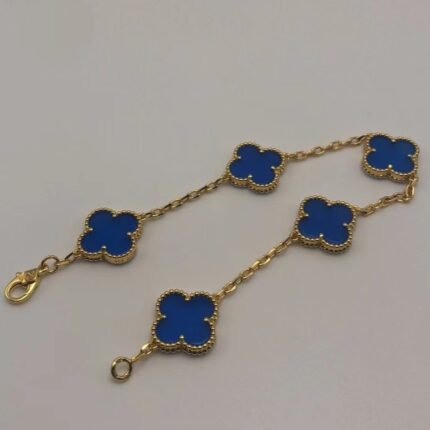 Blue Agate 5 motifs bracelet- with zircon(蓝玛瑙间钻四叶草五花手链)