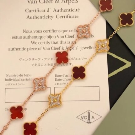 Carnelian 5 motifs bracelet- with zircon(红玉髓间钻四叶草五花手链)