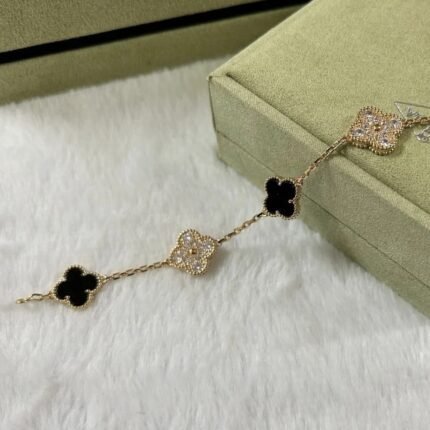 Black onyx 5 motifs bracelet- with zircon(黑玛瑙间钻四叶草五花手链)