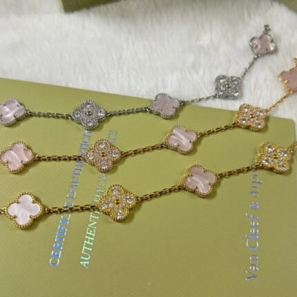 Pink pearl 5 motifs bracelet(粉贝母四叶草五花手链)