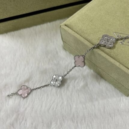 Pink pearl 5 motifs bracelet- with zircon(粉贝母间钻四叶草五花手链)
