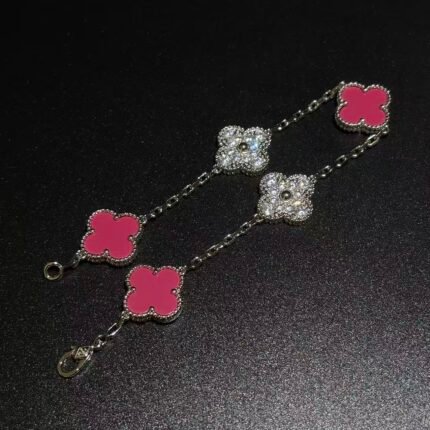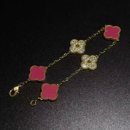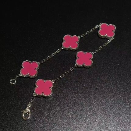 Pink porcelain glaze 5 motifs bracelet(粉瓷釉四叶草五花手链)