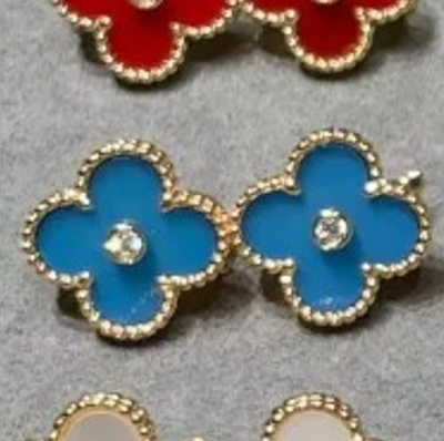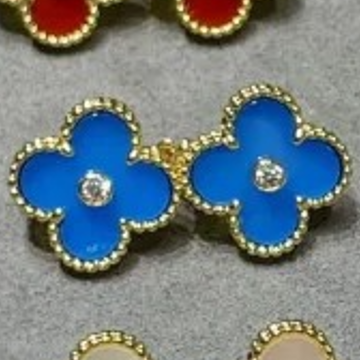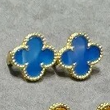 Blue Agate motif earring-with diamond(蓝玛瑙带钻四叶草单花耳拍)