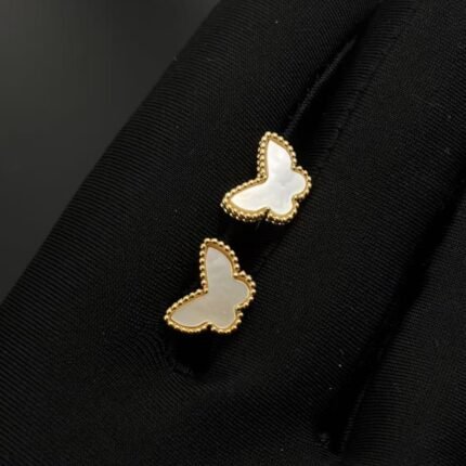 Gold white mother pearl butterfly earrings(金色白贝母蝴蝶耳钉)