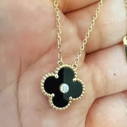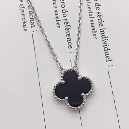 Black onyx single motif necklace(黑玛瑙四叶草单花项链)