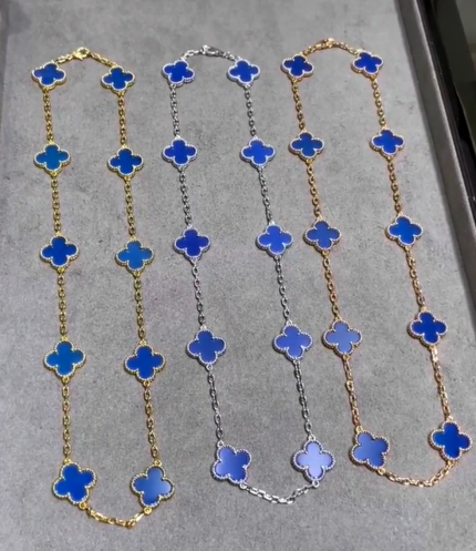 Blue agate 10 motifs necklace(蓝玛瑙四叶草十花项链)