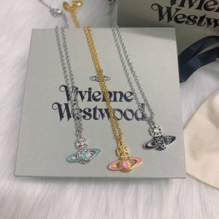 Arc-shaped diamond studded Saturn necklace(西太后弧形镶钻小土星项链)