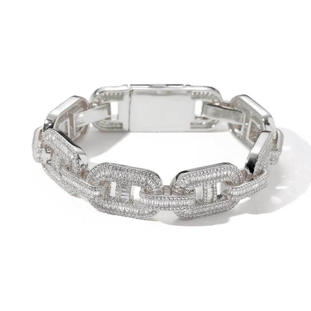 Home Free Brand Bracelet 15mm copper inlaid zircon pig nose Cuban chain(15mm铜镶锆石猪鼻子古巴链)