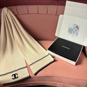 Home Scarf Chane* 25b Knitted Cashmere – White(25b针织羊绒-白)