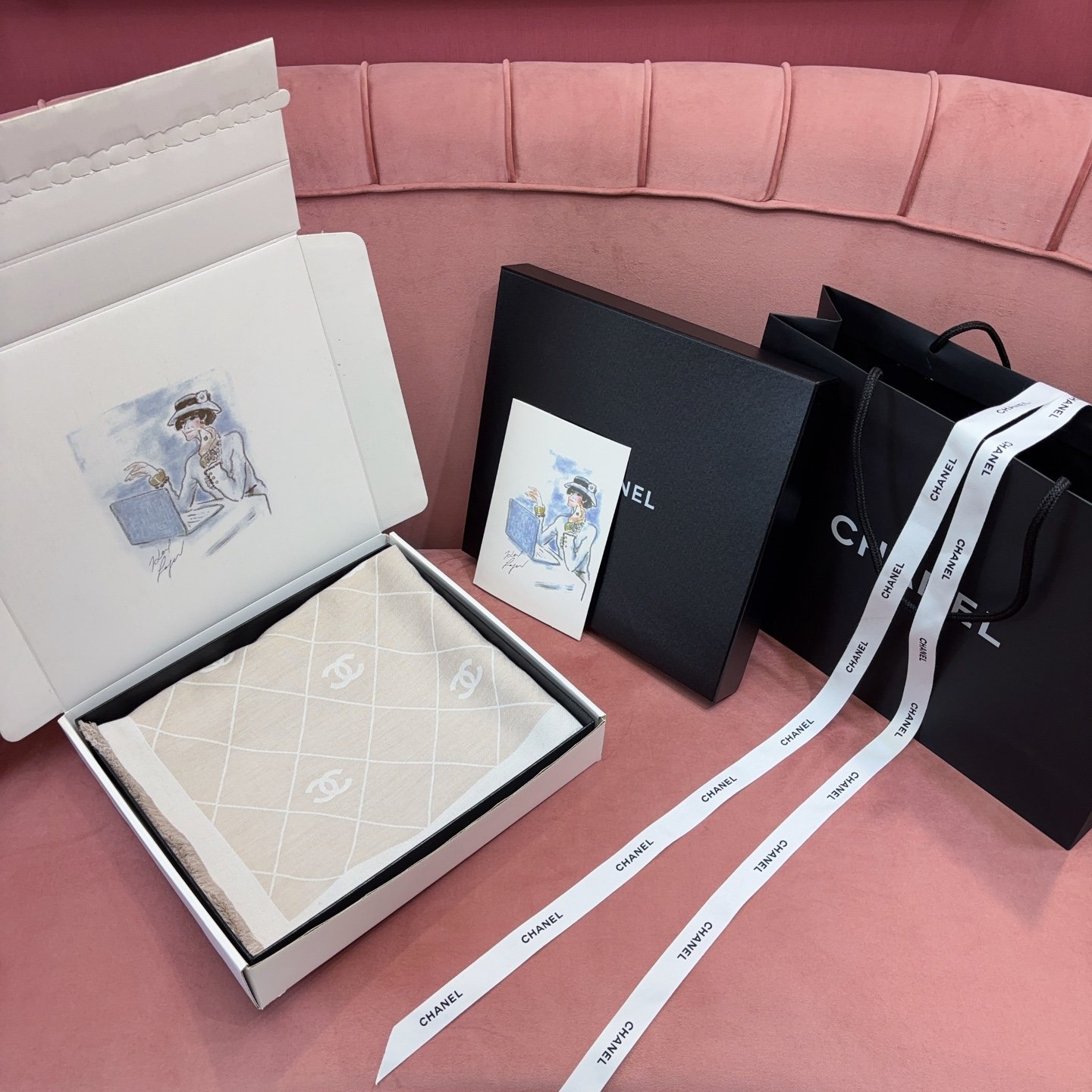 Home Scarf Chane* 25P Double C Diamond Pattern Shawl – White(25P双C菱格披肩-白)