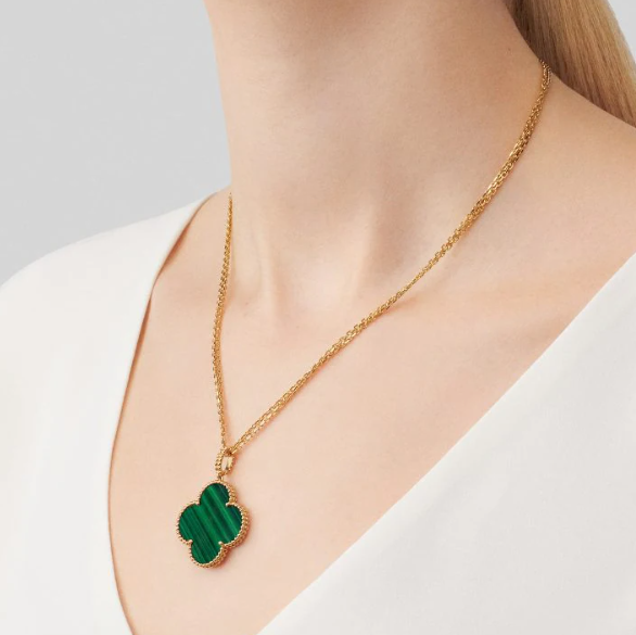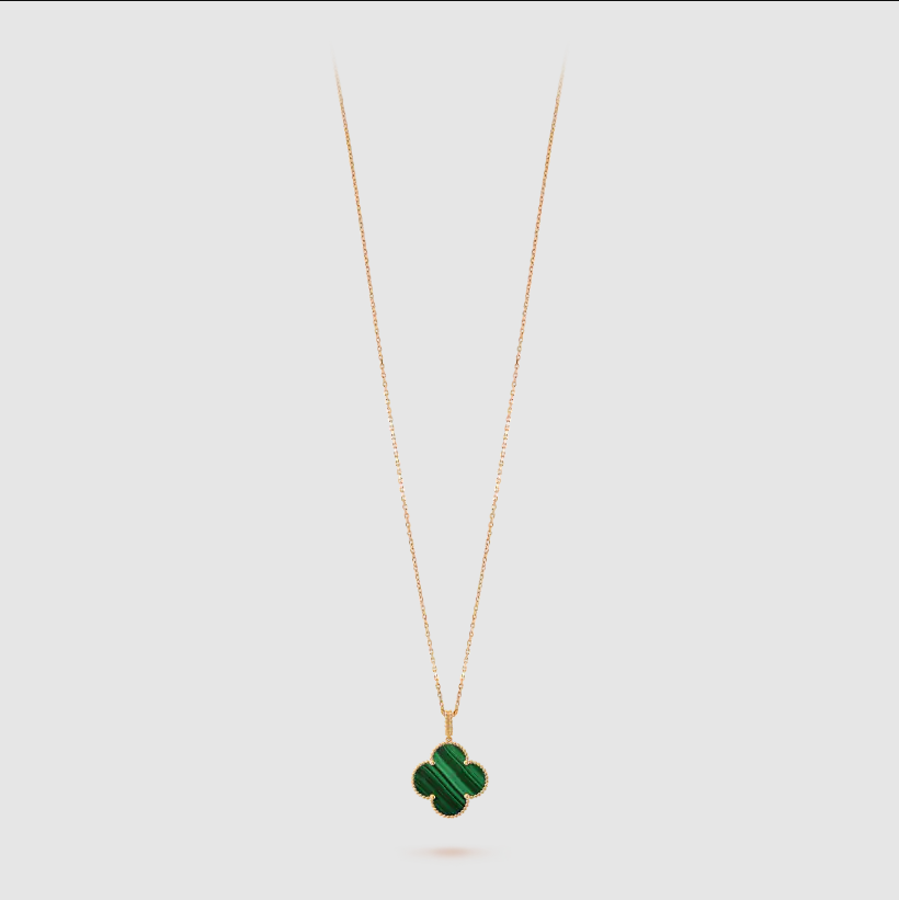 Home Van Cle* Necklace 26mm yellow gold malachite single motif necklace(26mm金色绿玛瑙四叶草单花项链)