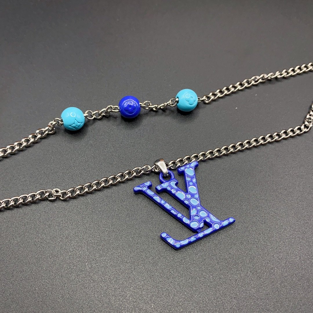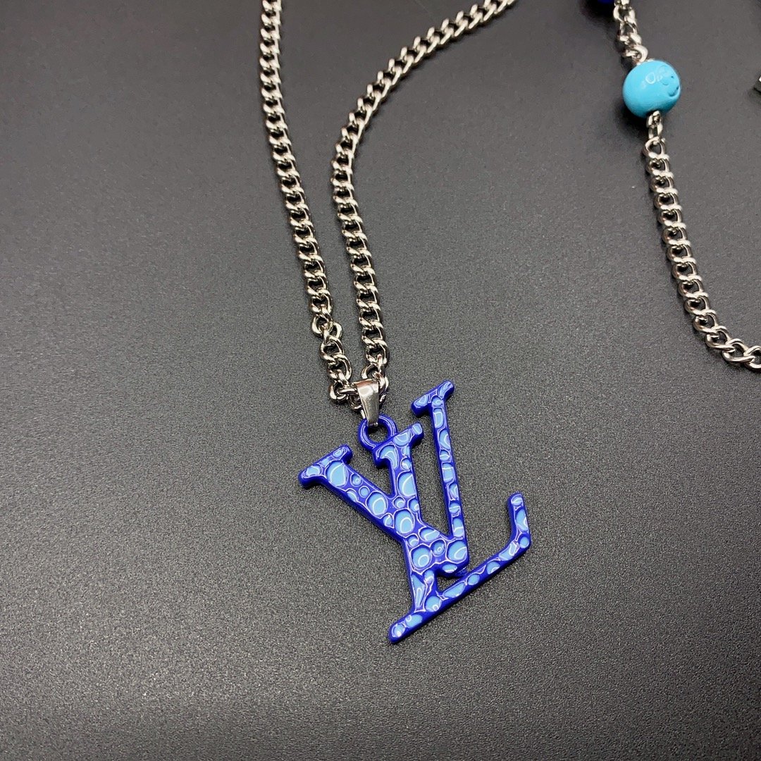 Home Louis V* Bracelet Blue Alphabet Diamond Necklace(驴牌蓝色字母钻石项链)