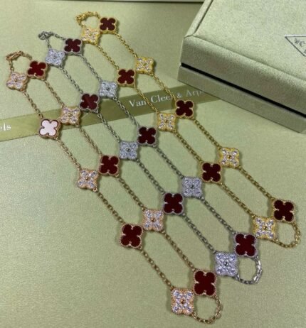 Carnelian 10 motifs necklace--with zircon(红玉髓间钻四叶草十花项链) $115.00 – $120.00