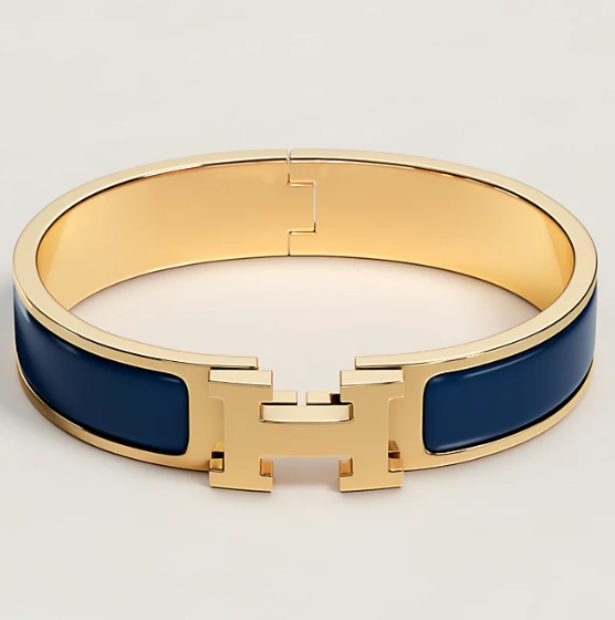Home Herme* Bracelet Gold buckle bright navy leather Clic H bracelet(H家金扣亮海军蓝皮Clic H手镯)