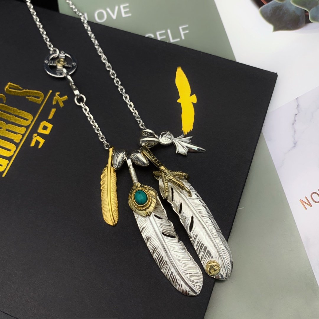 Home Goro* Necklace Golden feather inlaid turquoise chain set(高桥金色羽毛镶嵌松石套链)
