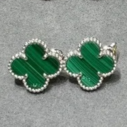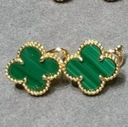 Home Van Cle* Earring Malachite motif earring(孔雀石四叶草单花耳拍)
