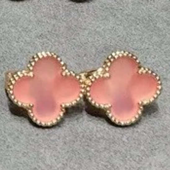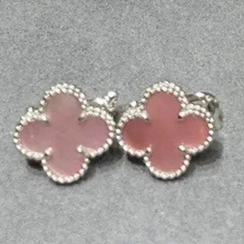 Home Van Cle* Earring Pink pearl motif earring(粉贝母四叶草单花耳拍)