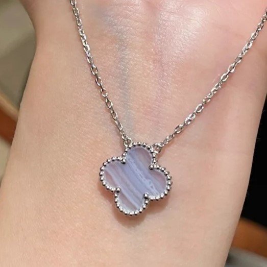 Home Van Cle* Necklace Purple chalcedony silver single motif necklace(紫玉髓银色四叶草单花项链)
