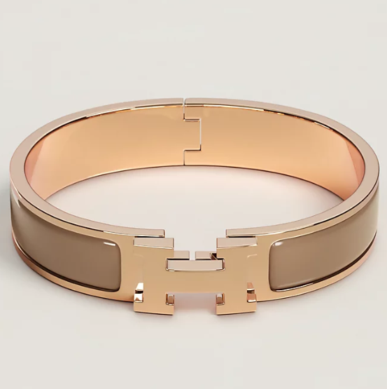 玫瑰金扣栗皮Clic H手镯