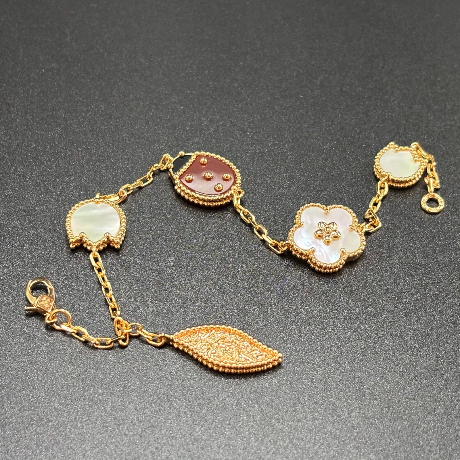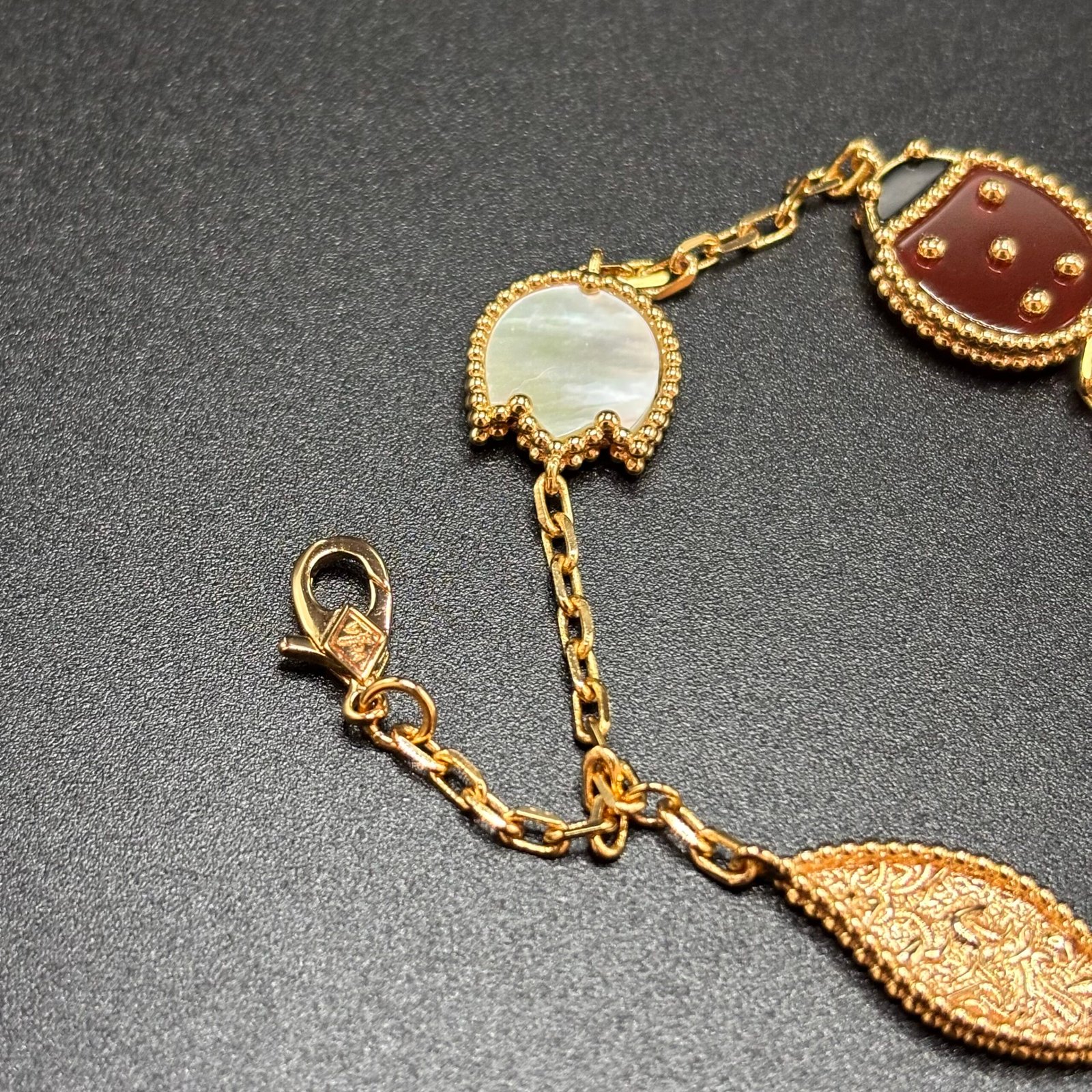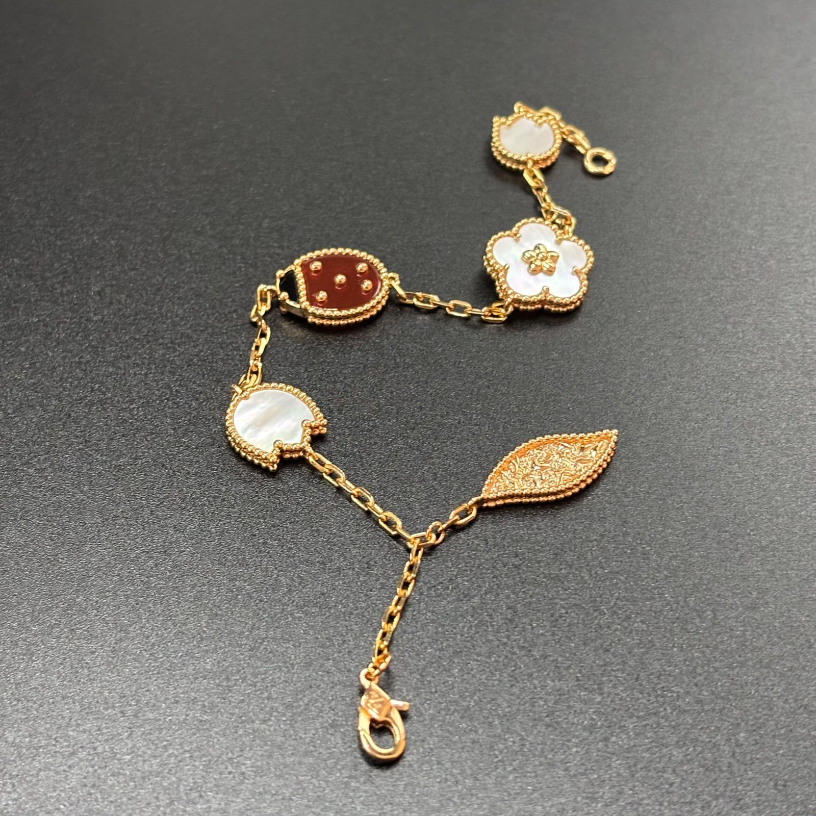 Home Van Cle* Bracelet Rose gold ladybug rose 5 motifs bracelet(玫瑰金瓢虫玫瑰五花手链)