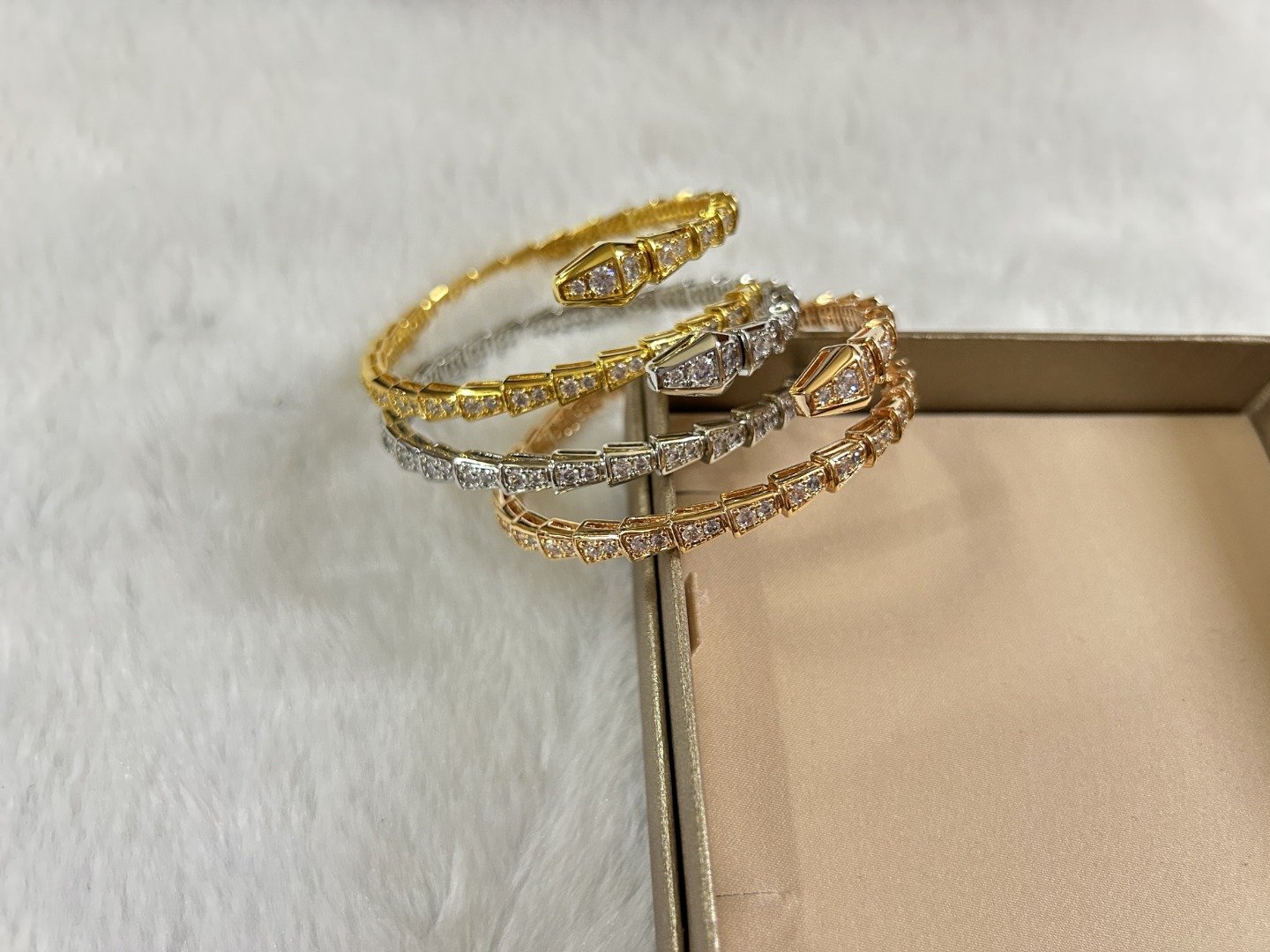 Home Bvlgar* Bracelet Single Loop Diamond Snake Bracelet(宝家单圈满钻蛇手镯)
