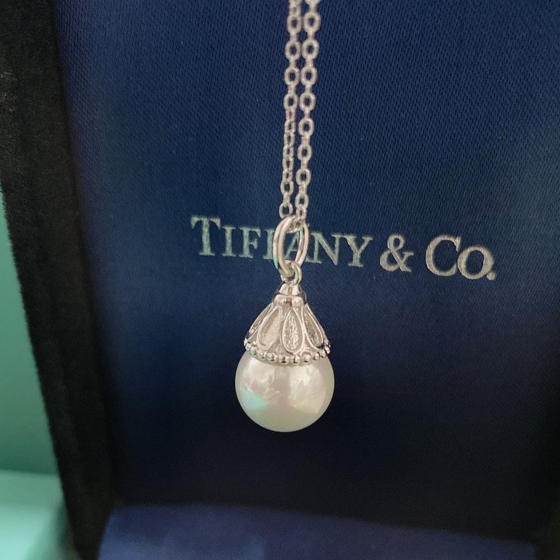Home Tiffan* T necklace Small hat pearl necklace(T家小帽子珍珠项链)