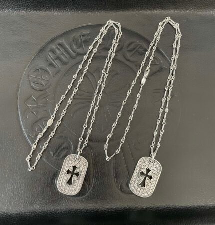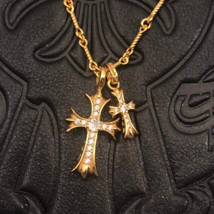 Home Chrome Hear* Necklace White Diamond Distressed Double Cross Necklace(克家白钻做旧款双十字架项链)