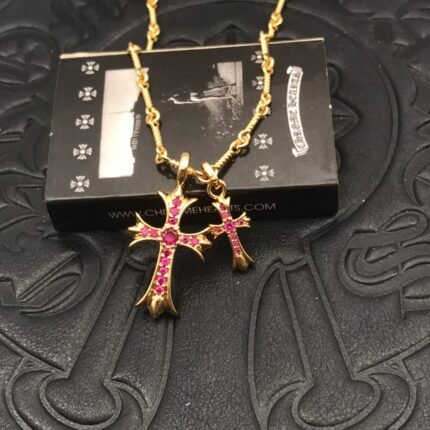 Pink Diamond Double Cross Necklace(克家粉钻双十字架项链) $168.00