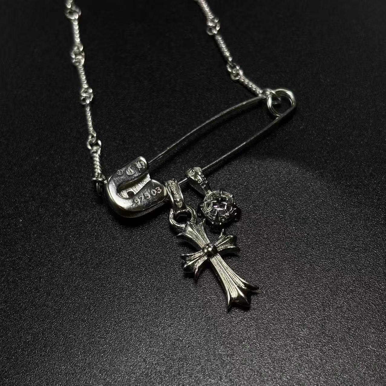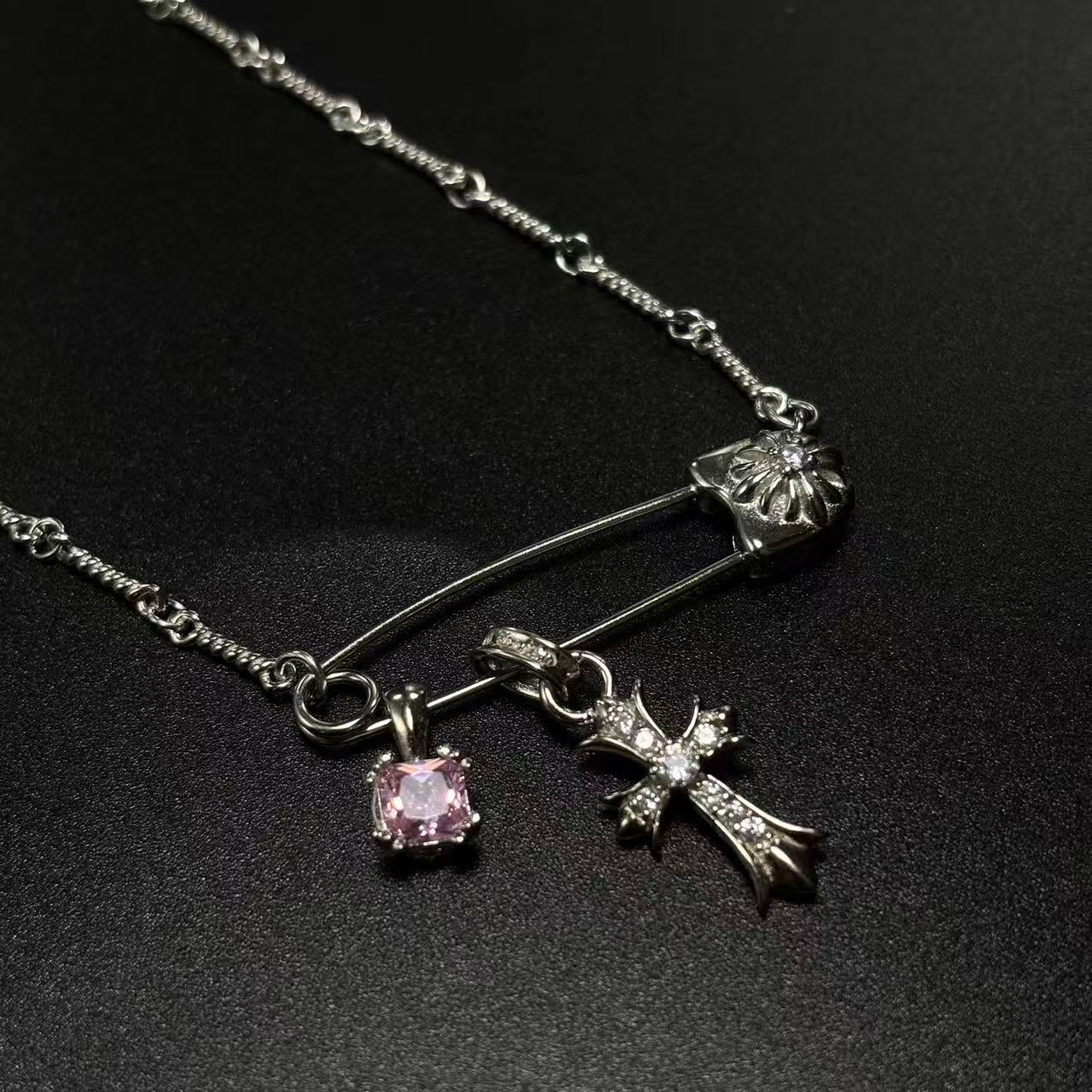 Home Chrome Hear* Necklace White gold-plated sugar cube cross necklace(克家别针十字架镀白金方糖项链)