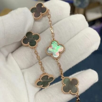 Gray pearl rose gold 5 motifs bracelet(灰贝母玫瑰金四叶草五花手链)