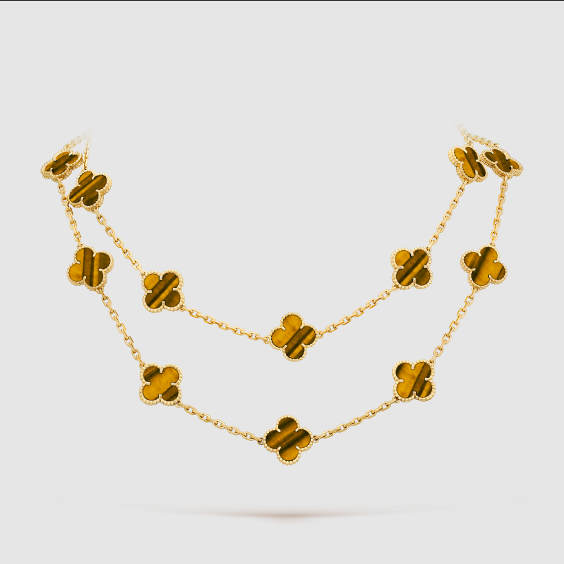 Home Van Cle* Necklace Yellow Gold tiger eye stone 20 motifs necklace(金色虎眼石四叶草二十花项链)
