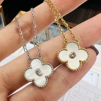 White pearl single motif necklace(白贝母四叶草单花项链)