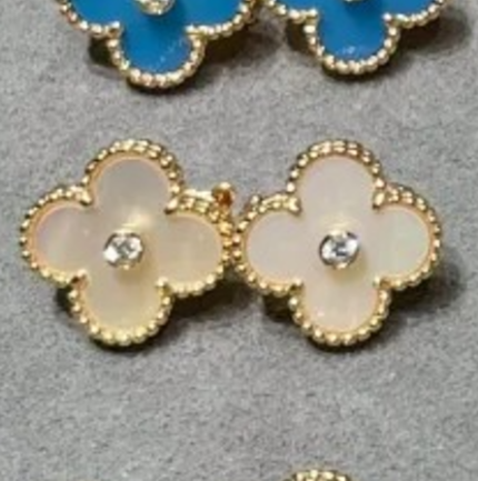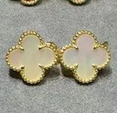 White pearl motif earring-with diamond(白贝母带钻四叶草单花耳拍)